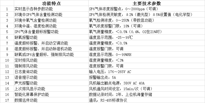 室內(nèi)SF6氣體、氧氣在線監(jiān)測報警系統(tǒng),是針對變電站室內(nèi)SF6組合電器設(shè)備SF6絕緣氣體泄漏的在線式監(jiān)測報警系統(tǒng),主要應(yīng)用在變電站內(nèi)35kV SF6開關(guān)室,500kV、220kV、110kV GIS室,SF6實驗室儲存室以及其他安裝SF6設(shè)備的室內(nèi)環(huán)境的綜合監(jiān)測。對環(huán)境中SF6氣體泄漏情況和空氣中含氧量進行實時監(jiān)測。本系統(tǒng)采用新型高靈敏度傳感器,自有的紅外激光技術(shù)。當(dāng)室內(nèi)SF6及O2的濃度發(fā)生微小變化時,傳感器立即能響應(yīng)這一變化,經(jīng)單片機處理將信號傳之控制器。控制器對數(shù)據(jù)處理、存儲、彩色顯示、報警、風(fēng)機,除濕,調(diào)溫控制,并將結(jié)果傳送到遠程計算機。